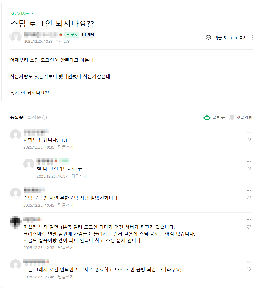 3. 스팀 접속자가 많아서 발생하는 현상이다.